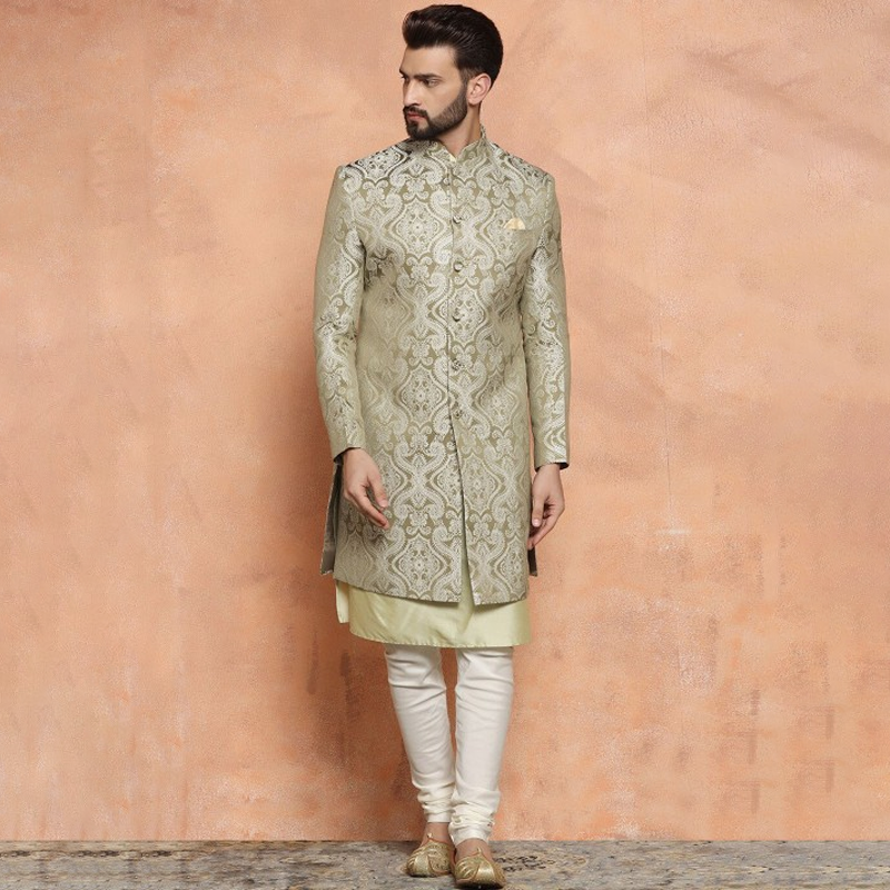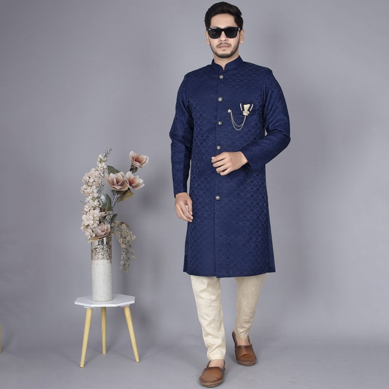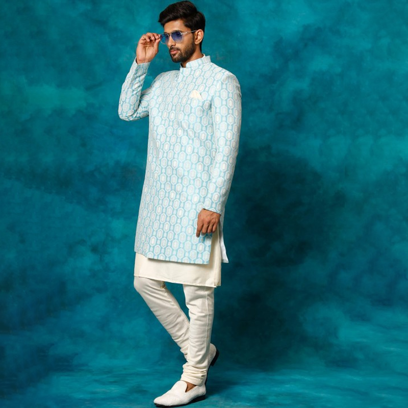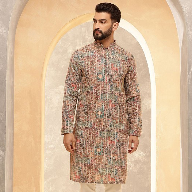 Men Yoke Design Flared Sleeves Thread Work Kurta