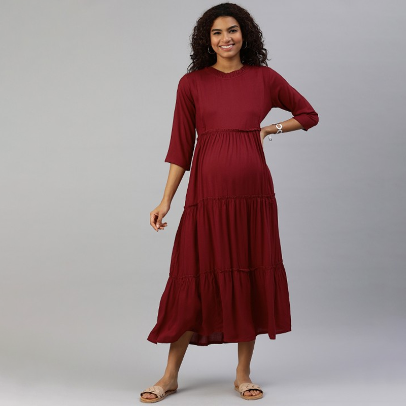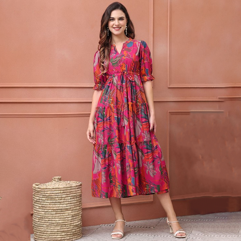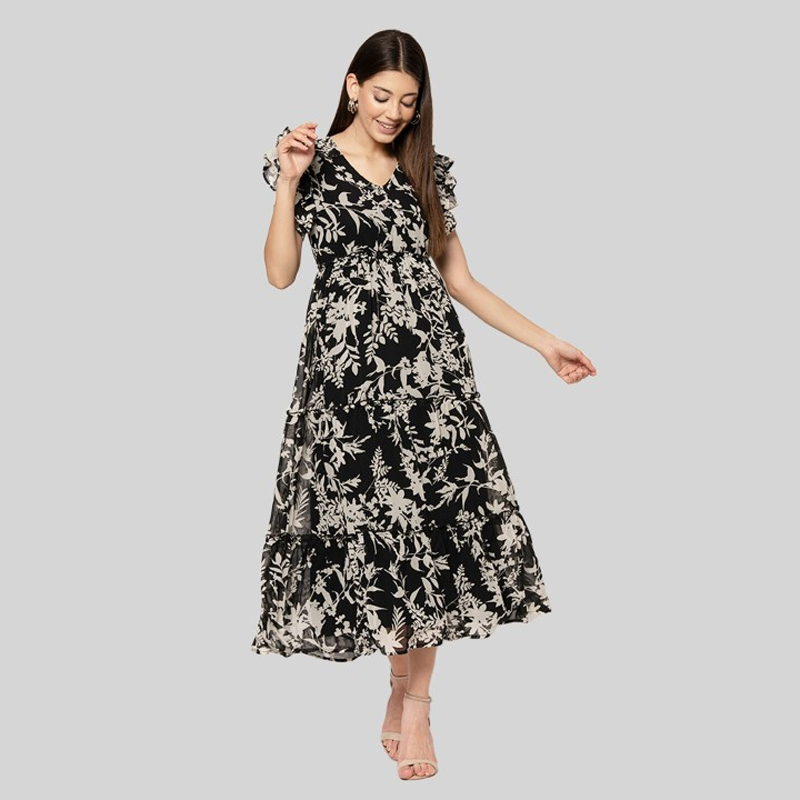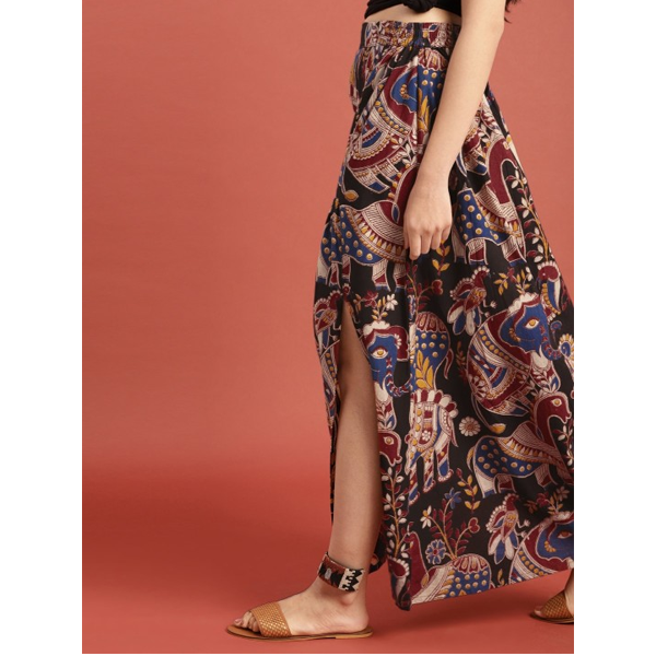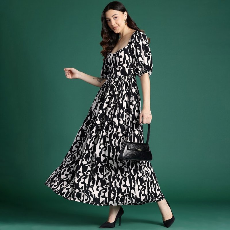 Red abstract print maxi dress Sweetheart neck Long, cuffed sleeves Gathered or pleated detail Maxi length in straight hem Georgette fabric Zip closure Size & Fit The model (height 5'8) is wearing a size S Material & Care Fabric:Georgette Machine WashShape